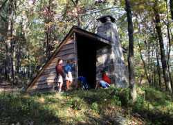 Adirondack-type shelters are intended for overnight stays to extend the hiking experience. Shelters are open year-round. Trail shelter areas are located at Wolfkiel Run on the west side of the valley and Cow Run on the east. Each area has six shelters (each shelter accommodates 3 to 4 people). Each
