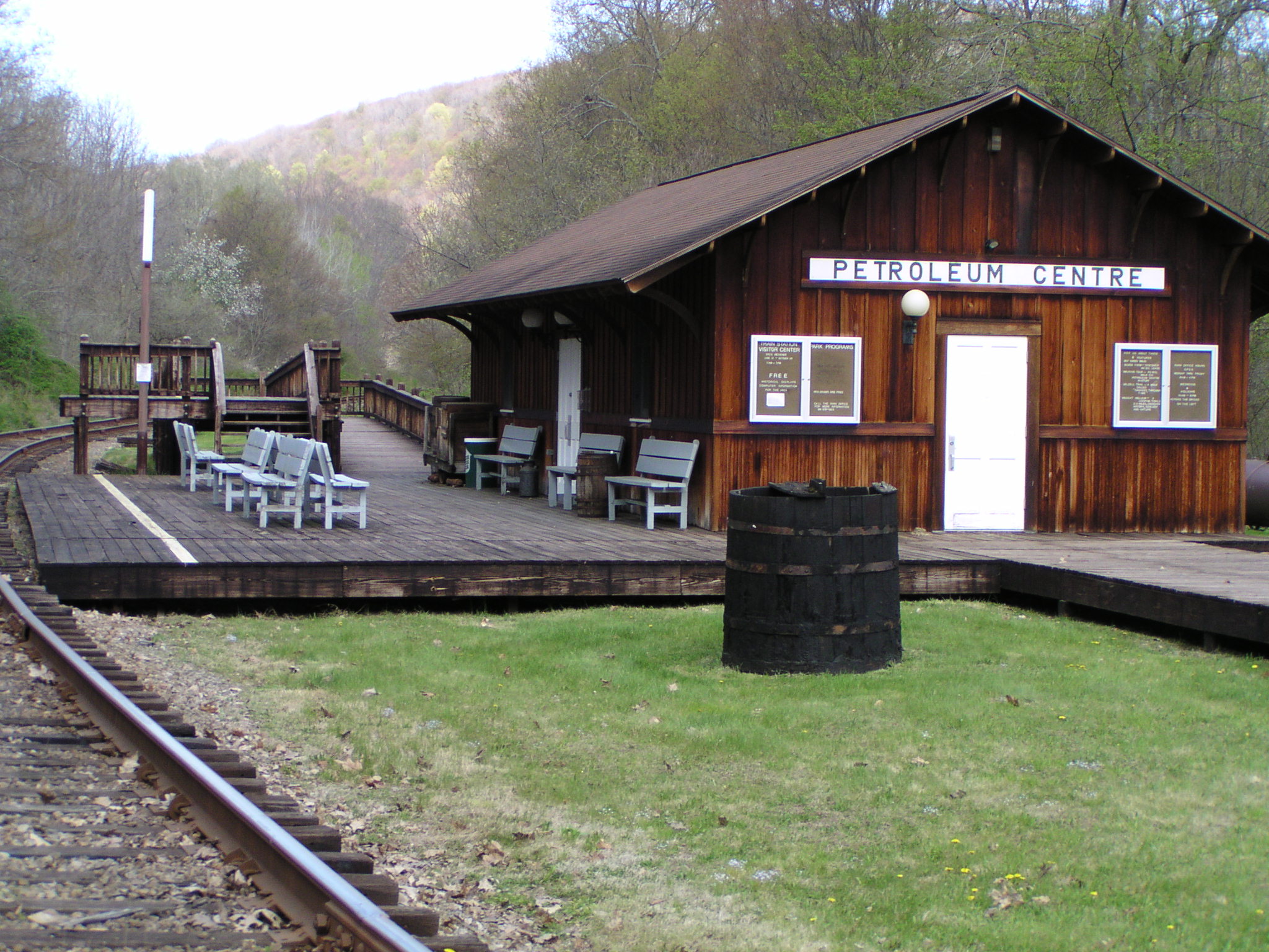 The visitors center hosts displays and programs. “A Contrast in Time” slideshow takes you on a six-minute journey through time. The din of pumping wells and shouting men in the 1860s contrasts with the rustling leaves in a gentle breeze in present day Oil Creek. The train station is open 11 a.m. to 5 p.m. Saturdays and Sundays during the summer season. Visit the Train Station Visitor Center for historical displays, an exciting diorama and an interactive computer information center.