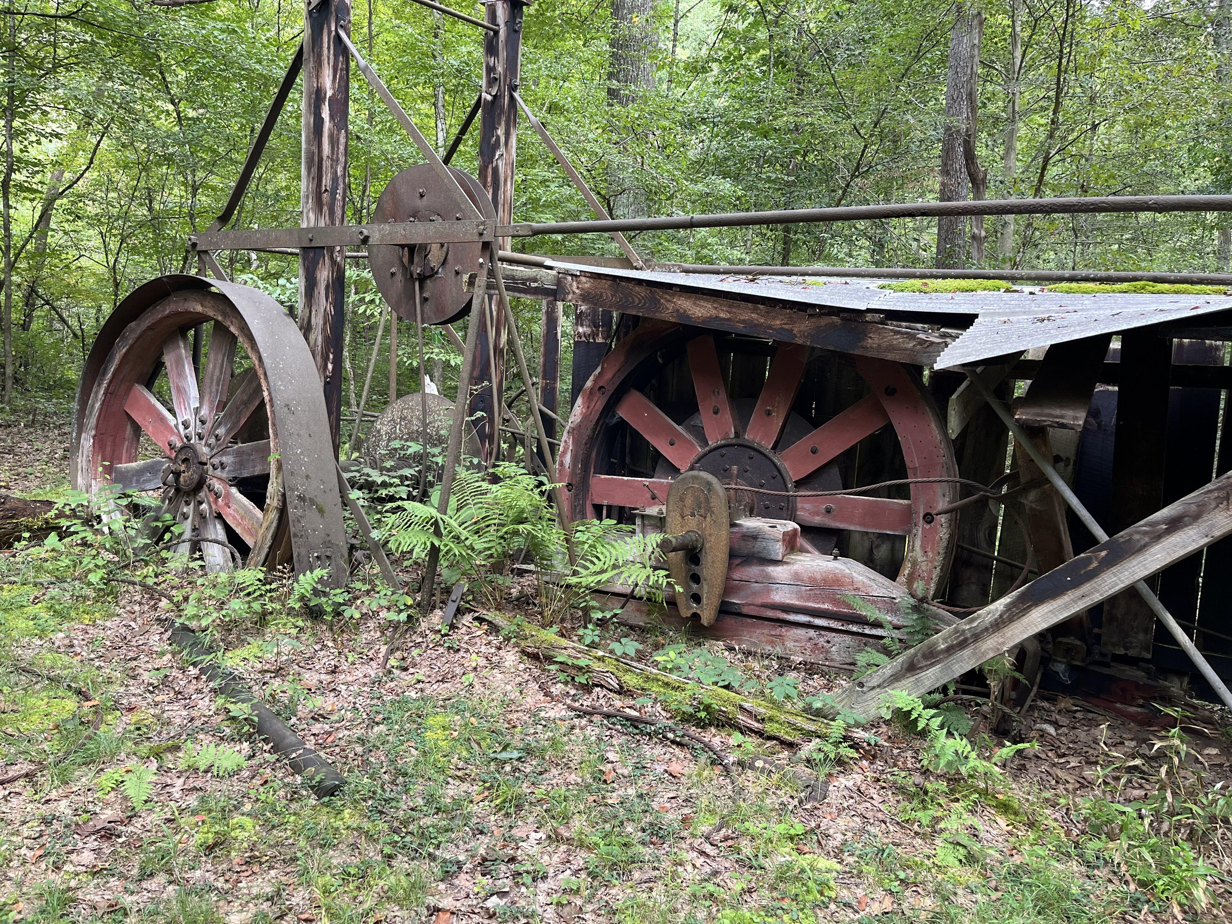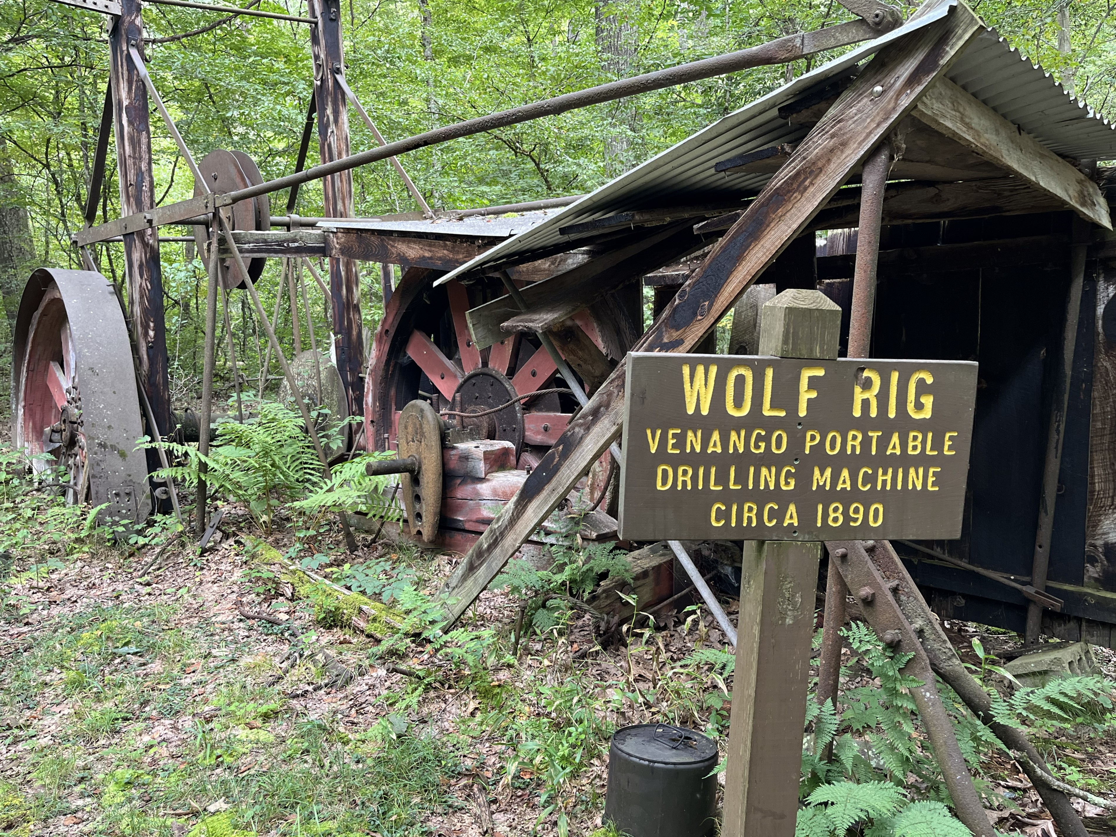 This trail is dotted with old oil well sites, the remnants of a power house, oil pits, kick poles, and a Wolf Rig